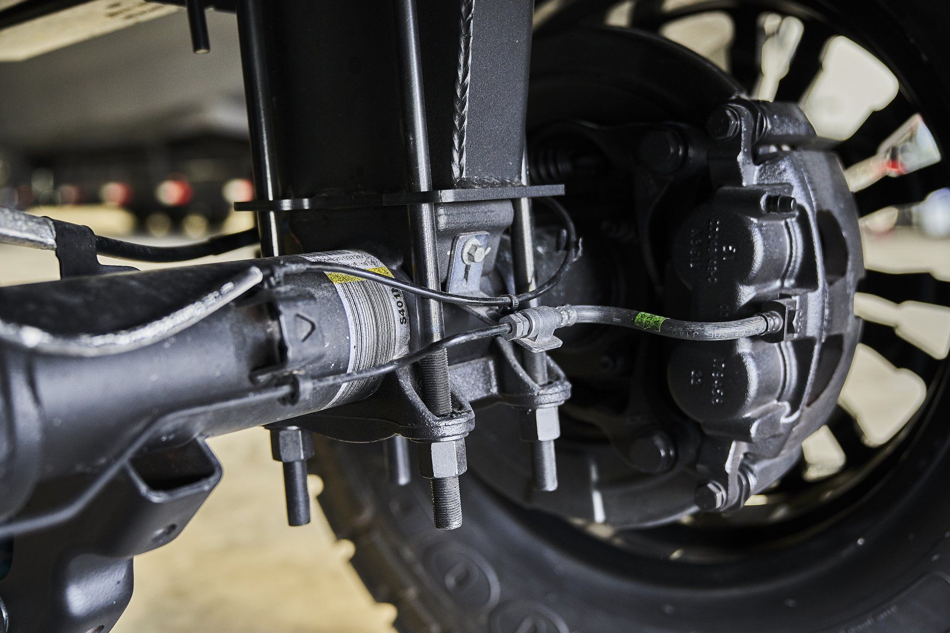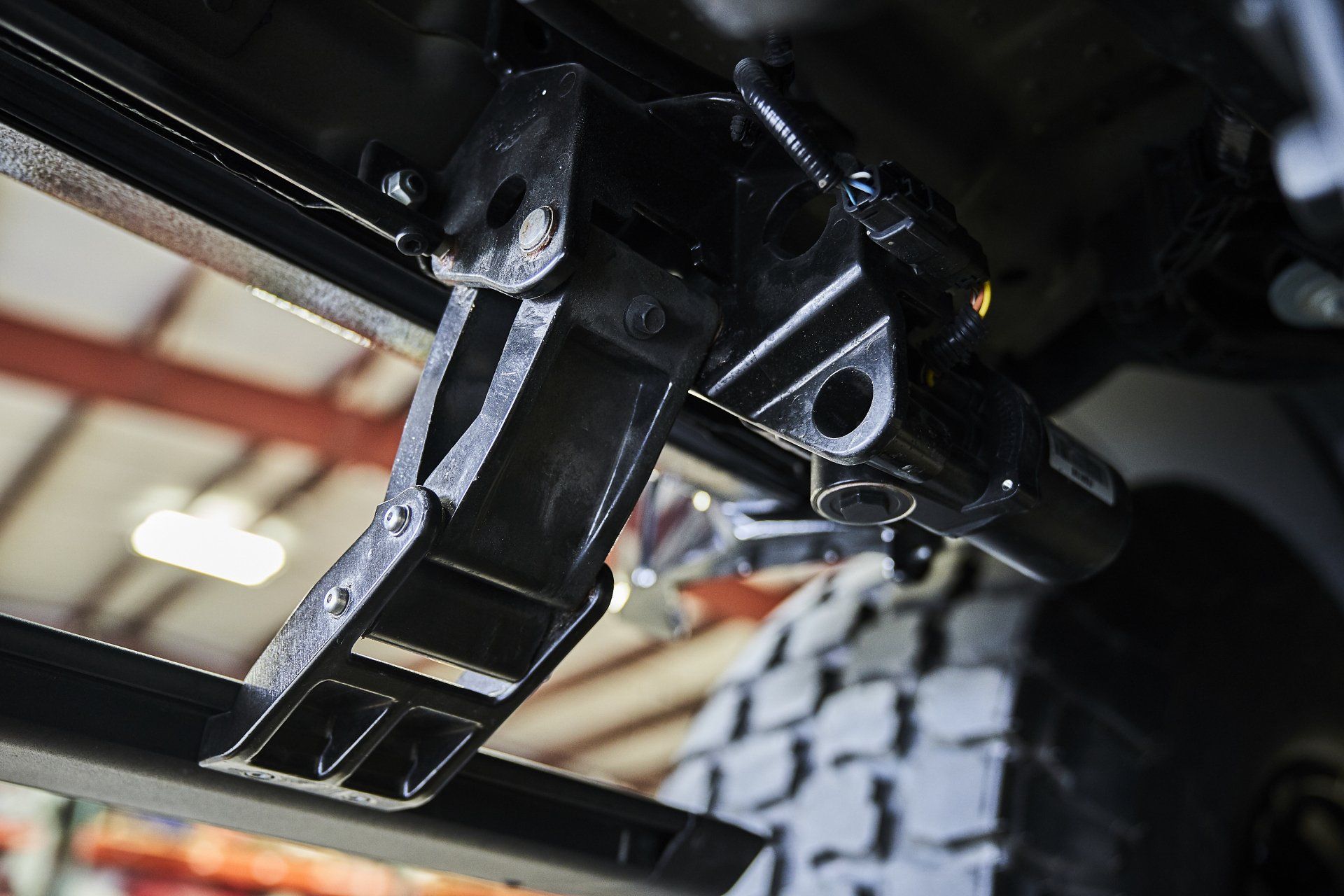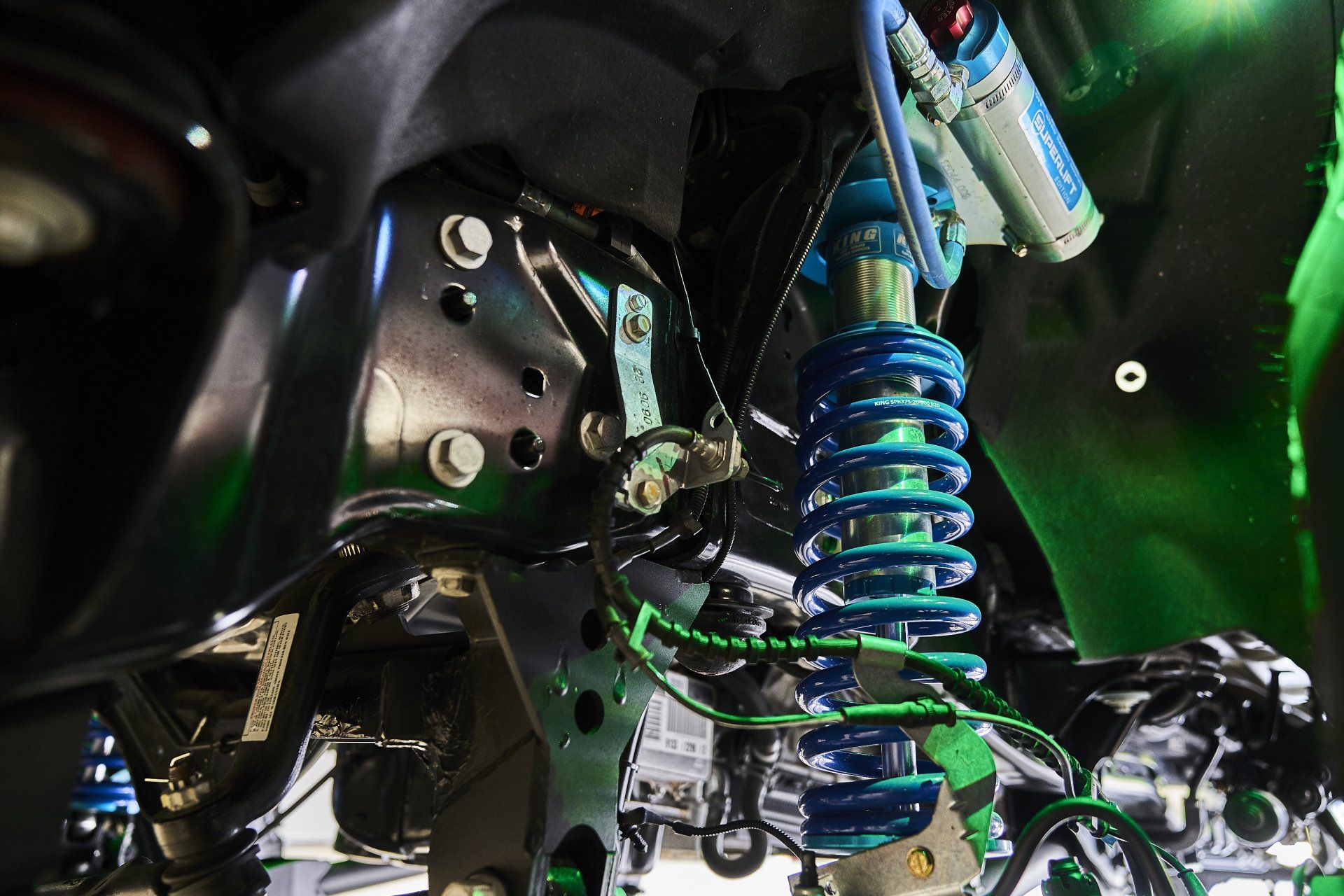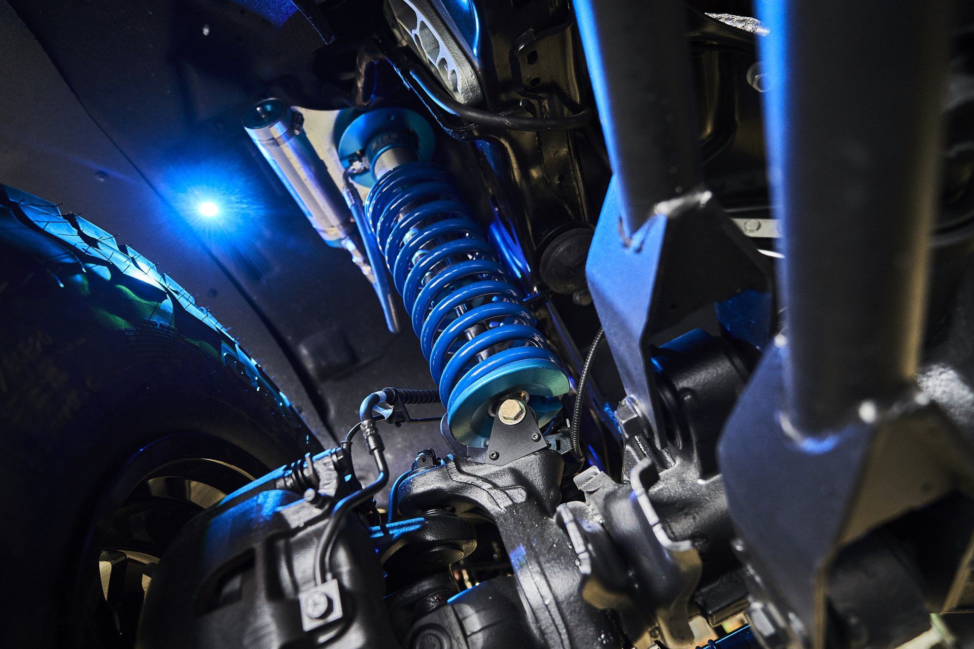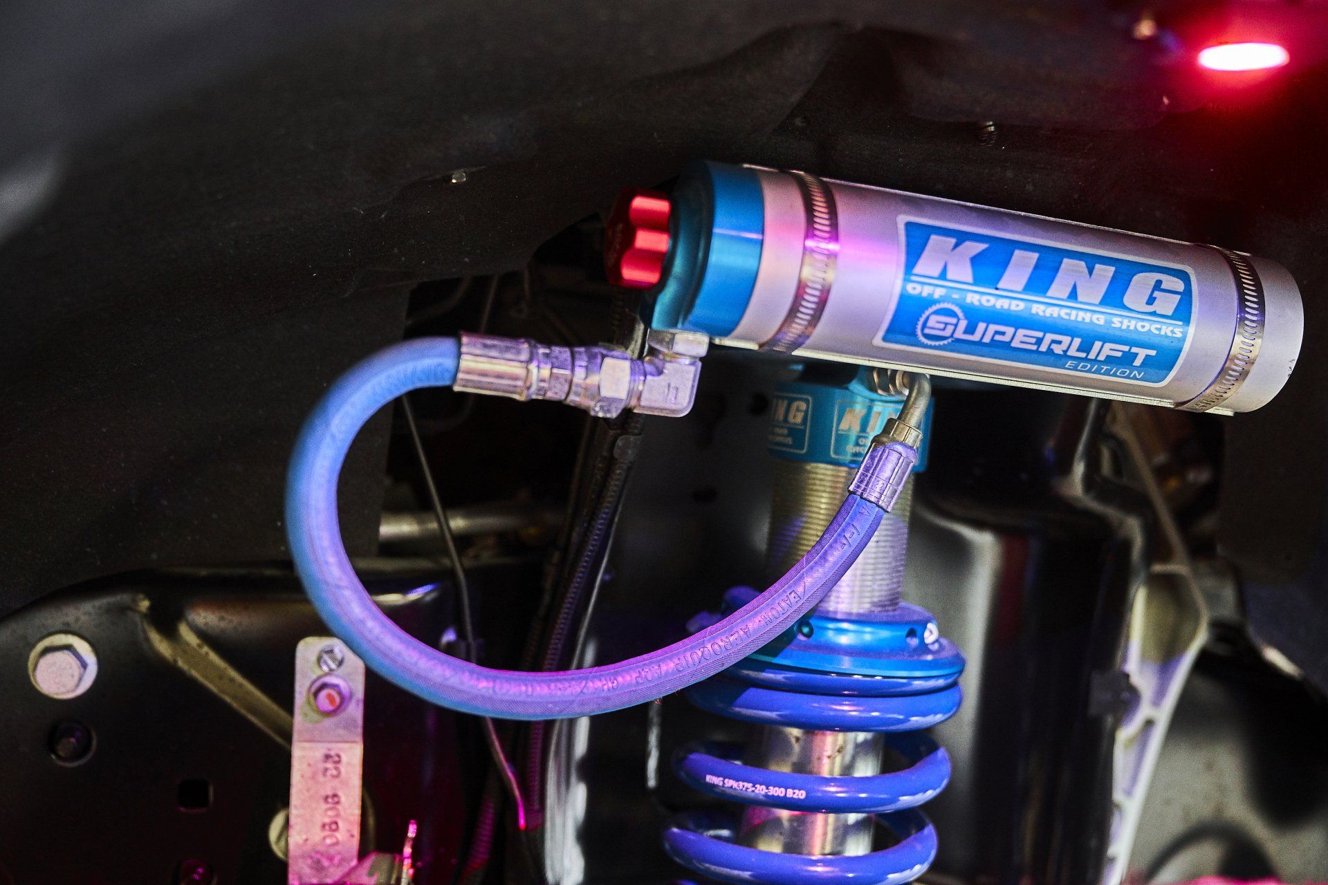 The suspension is top of the line Superlift featuring King coilovers and reservoir shocks. One of the most surprising aspects of the BA350 is the OE like ride quality. A dual stabilizer is added to eliminate any bump steer which is common from larger tires. Forged 20” wheels are courtesy of long time wheel manufacturer Weld Industries custom made to DEFCO Specs.
