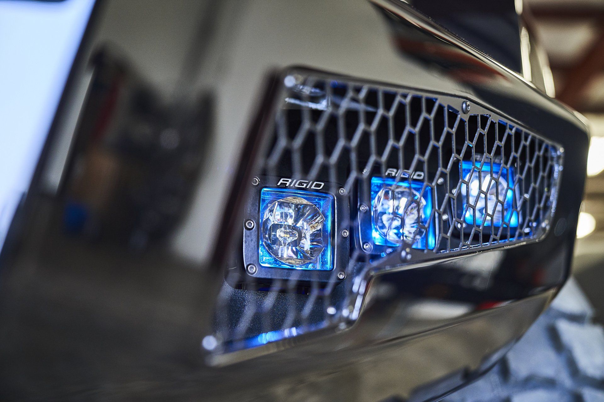 - 20” Rigid Radiance RGB backlit center mounted bar in front bumper