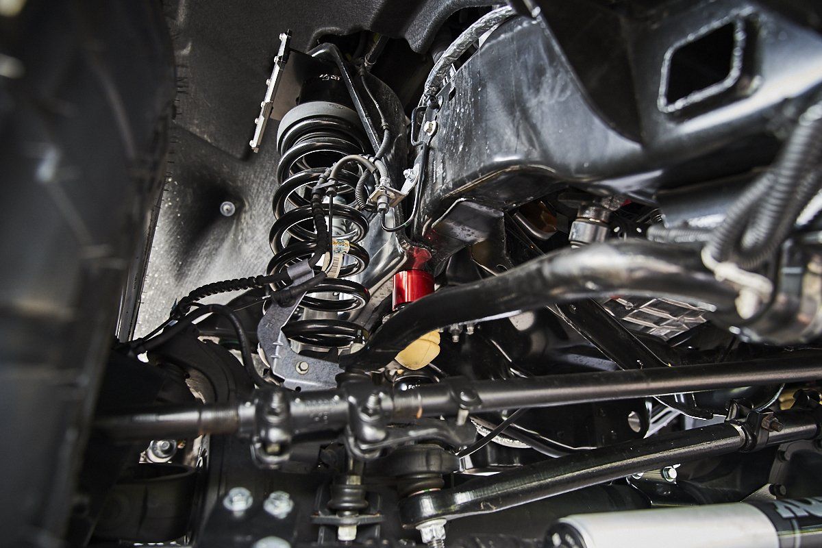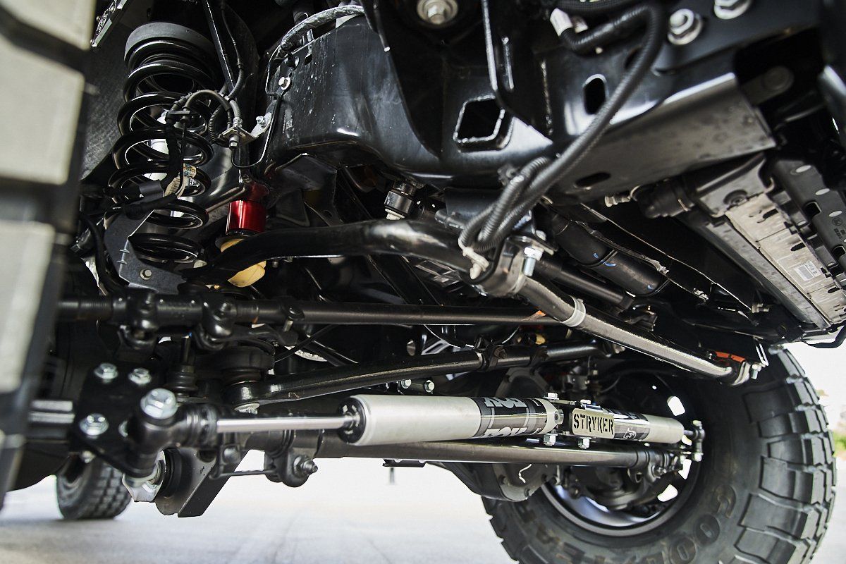 The suspension is top of the line produced exclusively for DEFCO. One of the most surprising aspects of the BA450 is the OE like ride quality. A dual stabilizer is added to eliminate any bump steer which is common from larger tires.